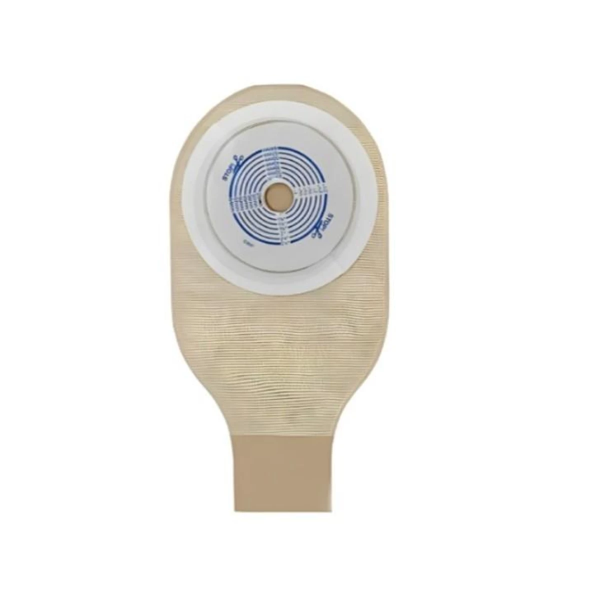 Bolsa de uma peça drenável, para Colostomia / Ileostomia, com barreira protetora de pele Stomahesive e adesivo microporoso hipoalergênico. Confeccionada com 3 películas plásticas (a externa é uma tela protetora perfurada e não aderente), contendo EVA (acetato de vinil etileno) e PVDC (cloreto de polivinilideno).